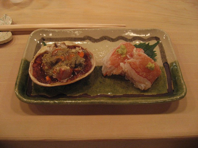 ・香箱カニ(ズワイ蟹の雌)とお刺身。