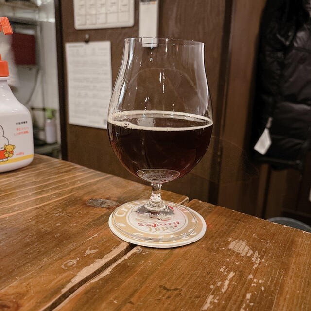 黒にも近い深い赤褐色の見た目のセゾンビール。