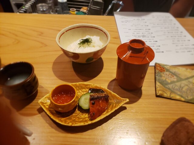 鯛とたくあんの巻物は、トロなどと違って食事の序盤として主張が強すぎず、他の料理を邪魔しない