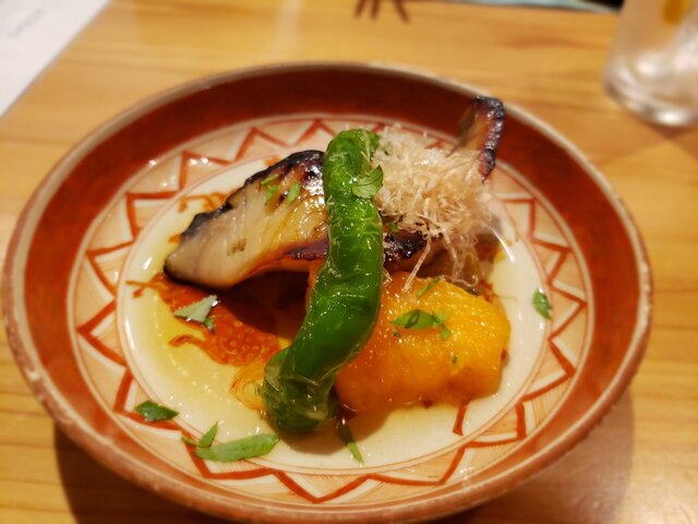 いかに白子の味噌和えなど サツマイモのカボスかけはもう少し酸味が強くても良いかも