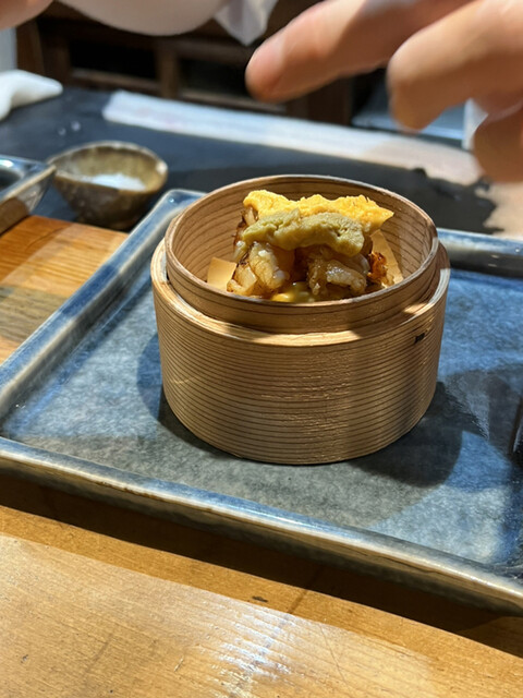 熱々の焼石で炙った伊勢海老を雲丹と共に上のせた焼きおにぎりといい遊び心も感じられとても楽しいメニュー構成。