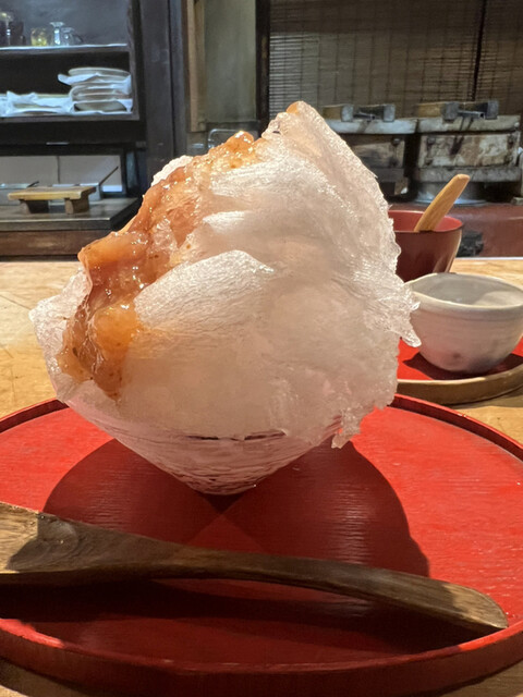 食後のデザートは美しく削られた見事なまでに真っ白なかき氷。