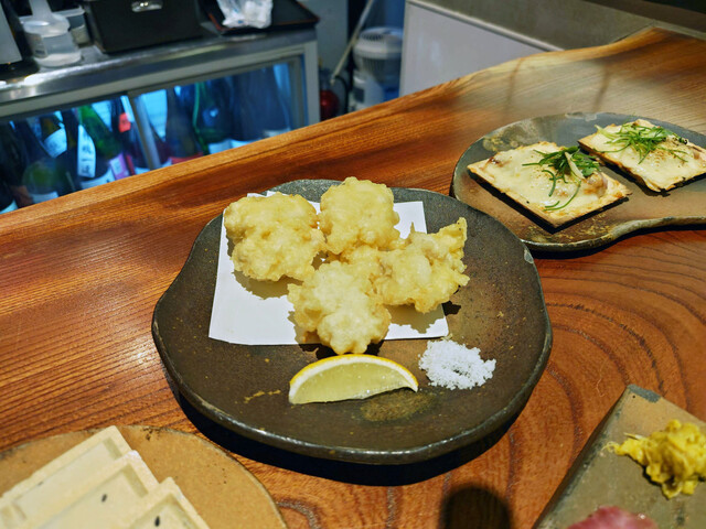 白子の天ぷらは大好物なので、あると必ず頼む一品。クリーミーな白子が口に広がる瞬間は、至福のひと時を感じさせてくれる。
