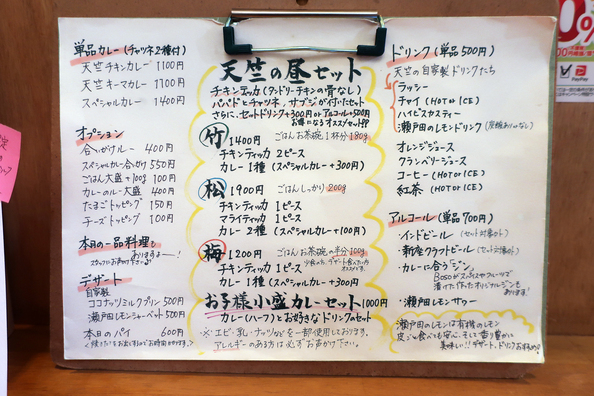 ランチタイムは、松竹梅のセットがオススメ。松竹梅の法則(※1)で大抵の人は、「竹」を選んでそう。セットを注文すると通常500円のドリンクが300円で付けられるため、一緒に注文。ちなみに、カレーとチャツネは選択可能。