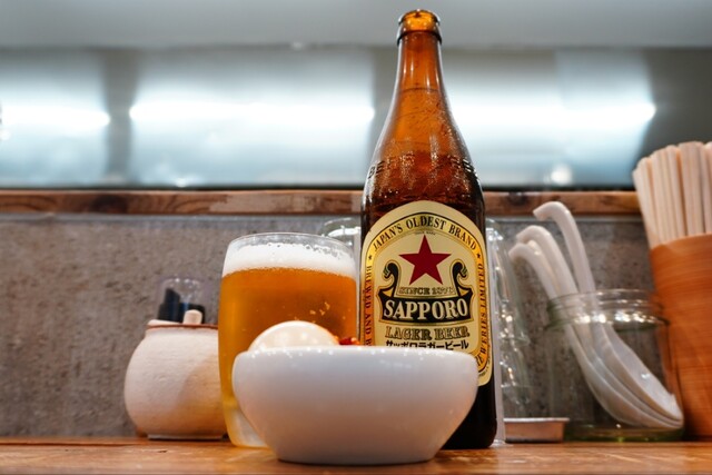 ビールは赤星、味玉はゾンビ玉でお願いしました。