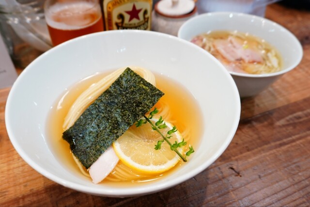 束穂は麺とスープに削ぎ落としレモンスライスを箸で捻り絞れば共に爽やかな香りとナイスアクセントで、最後まで飽きずにペロッと大変美味しく固形物を完食。