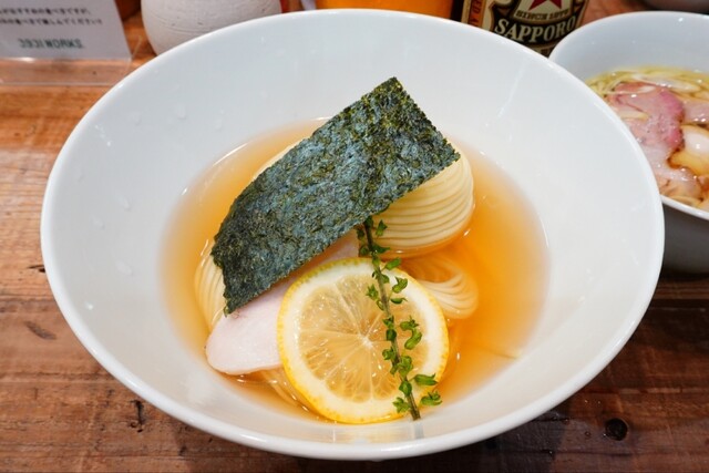 束穂を麺&スープに投入し啜って噛み潰すと爽やかな香りが口内に拡がり、レモンスライスを箸で捻り絞れば爽やかな酸味が加わり共にナイスアクセントで、気付けばペロッと大変美味しく固形物を完食。