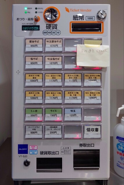 19:40番号が呼ばれ店内の券売機にて食券を購入し店内待ち席へ。