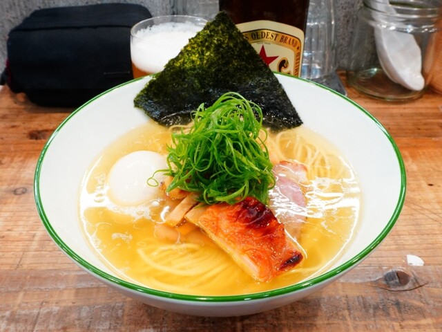 味玉塩そば+味玉+赤星中瓶