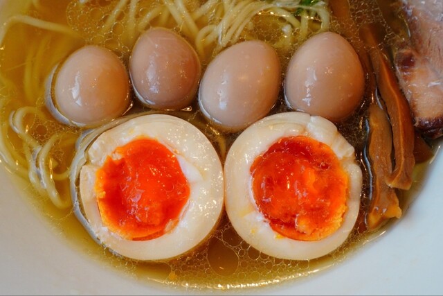 ピンク色したスモーキーでミッシリ肉々しい吊るし焼豚&脂身プルンな味染み豚バラチャーは共にチョイ厚カット、コリッとした食感&香り高いメンマ、うずらの味玉は味染みた黄身まで熱々ジュルリ状、那須御養卵の味玉は大玉で黄身鮮やかなオレンジ色した絶妙なシットリネットリゼリー状で、何れも秀逸な具材達で…やっぱりビールと共にいただきたかったorz