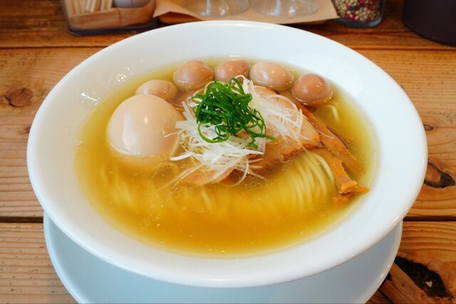表層の香味油のコクと鶏の旨味タップリな出汁に塩ダレが程好くキリッと効いた、大変美味しい適温熱々の膨よかでコク深い淡麗鶏潮スープです^^