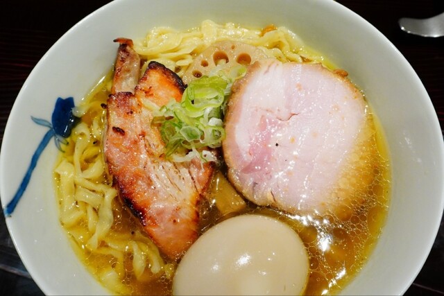 表層をキラキラと油玉が覆ったコクのある香味油に丸鶏ベースの旨味が抽出された出汁に円やかな塩ダレが塩梅ジャストで優しく調和した、大変美味しい無化調膨よか淡麗塩スープです^^