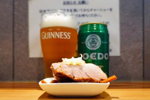 提供の都度手切りされる大小ランダムのオラチャー達は柔らかで味染みた上質な肉質のもの、焦げ茶のメンマ多数は味染み良くコリシャク食感、シャッキリ茹で加減で緑が色鮮やかなホウレン草、パリッと風味良い上質な海苔は増したい位で麺と共に、味玉Wは黄身濃厚鮮やかなオラオレンジ色した絶妙なシットリネットリゼリー状で、秀逸な具材達をアテにすれば残りのコエド毬花もアッという間に空に…