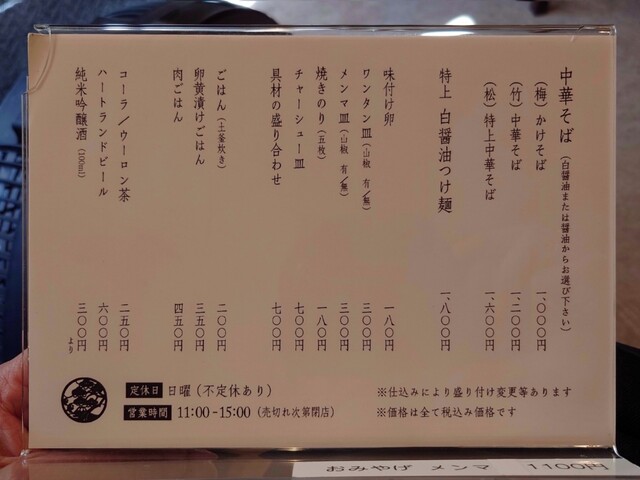 先に注文を取りに来るので口頭注文、後会計制です。