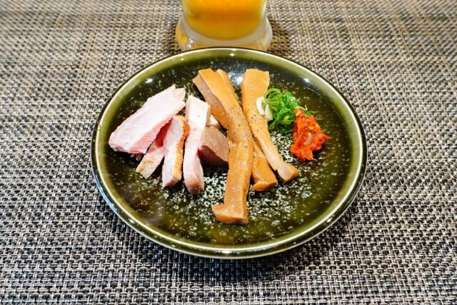 チョイ厚カットのピンク色した豚レアチャーはシットリ柔らかで肉々しく、コリジャキ食感で香り良い穂先メンマ、パリッと香り高い上質な海苔は半分に千切って麺と共に、味玉は黄身鮮やかなオレンジ色したシットリネットリゼリー状で味付けバッチリ、秀逸な具材達をアテに残りのプレモルも美味しく飲み干せました^^!