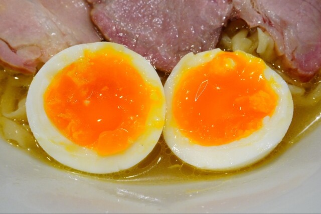 付け合せは薄衣で程好い歯応えの里芋唐揚げ2個と微かな酸味のサックリ甘酢漬け蓮根2切れ、つけダレの中にはフワジュワで山椒が仄かに香る実山椒つくね2個、追加した塩たまごは黄身シットリネットリ状の優しい塩味で、秀逸な具材達をアテに赤星も美味しく飲み干せました^^