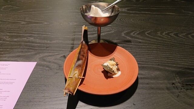 活気のあるタイ料理店です。コースには面白い地元の食材を使用した伝統的のタイ料理が数多く含まれていましたが、当たり(薬用鳩カレー、野生生姜、レモンバジル)とハズレ(バナナ花の蒸しカレー、田んぼのハーブ、焼きマリネ鶏)の割合はちょっと微妙でした。全体として、話題のお店なので、もう少し期待していました。それでも、特に牛肉餃子とゼリー茸のスターターと焼きブルー川海老のメインが気に入りました。厨房スタッフが料理を作っている様子を間近で見るのもとても楽しかったです。