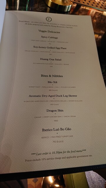 料理について、POTONGのおまかせコースに含まれた料理とほぼ同じレベルで、とても美味しかったです。特に「爆発した」蟹のサンドイッチとチャーシュー豚カルビが気に入りました。