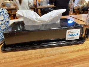 ティッシュケースには、HACCPの文字が。衛生管理はバッチリのようです。