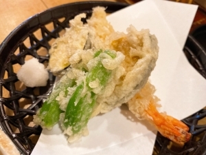 天ぷらもカラッと揚がっています。エビの火入れがちょうど良いです。さすが割烹という感じです。