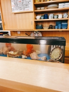 店内はお鮨屋さんらしい白木のL字型のカウンター。奥には座敷がありそうです。