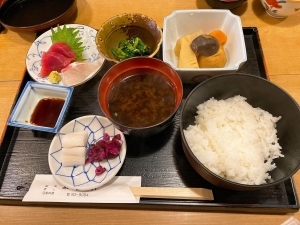 天ぷらか刺身かで悩むところですが、天ぷらにも刺身がついていることを確認して、「天ぷら定食」1050円にします。