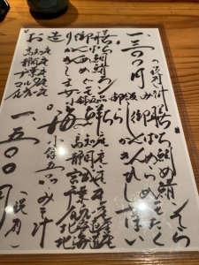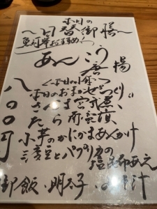 あとはお造り御膳と海鮮ちらし御膳があります。お造りの産地が一つ一つ書いてあるのが真面目な仕事です。