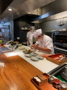 仲居さんにお客さんが注文を伝える声を聞いて、すぐに料理がスタートします。