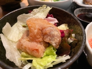 アンコウの唐揚げ。小鉢ですが日替わりのメインが楽しめます。
