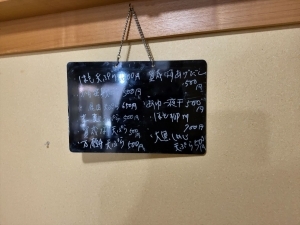 壁の黒板には季節の天ぷらがあります。
