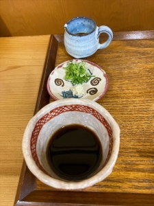 そばは白と黒があります。どちらも十割です。食べ方はいろいろで、辛味大根おろしとか鹿肉のつけ汁とかマニア受けしそうなメニューが用意されています。
