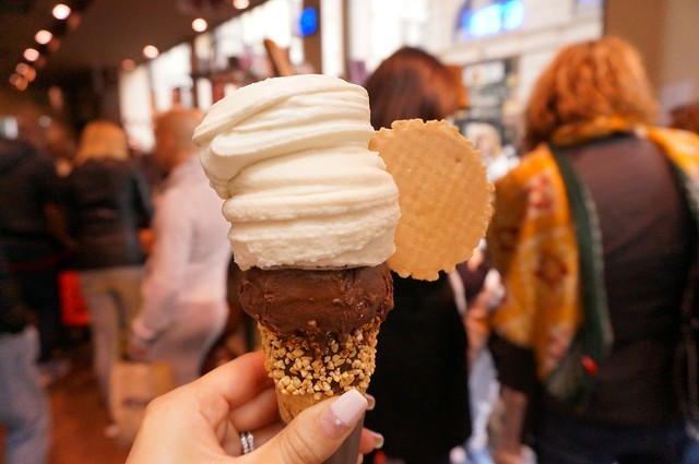 職人のおにーちゃんの厳選チョイスなので♪もうとにかく美味しいのは美味しいんですけれども、強いて言うと、この下の部分にあるダークなチョコが思った以上に苦さが強くて、濃厚なコクのある甘みが絶妙でした。コーンもいろいろ種類があるんですが、せっかくなので、一番豪華なやつ。