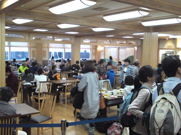 1階が食事処となっていて、昼過ぎの訪問時間とあって、すでに満員の状態。