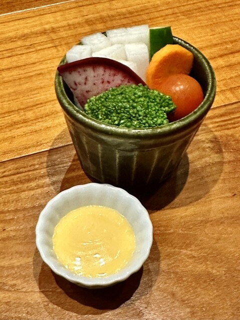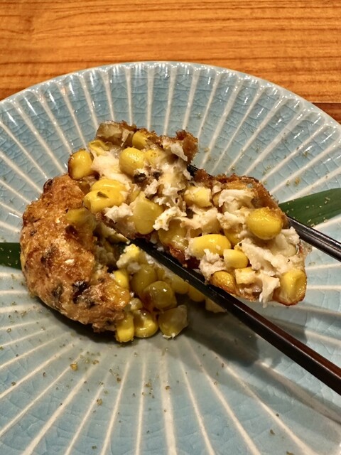 ・とうもろこしの飛龍頭 仕上げにからすみ