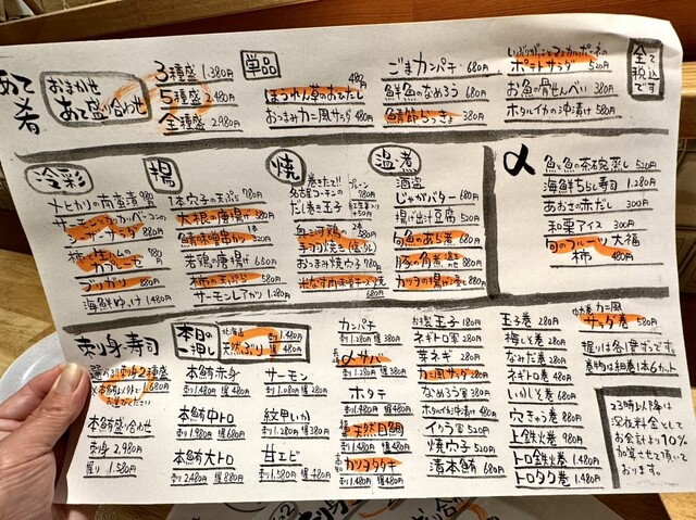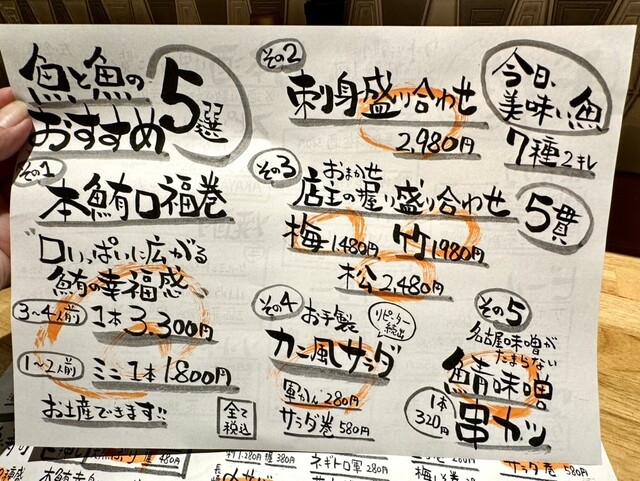 料理では魚料理・寿司をメインに