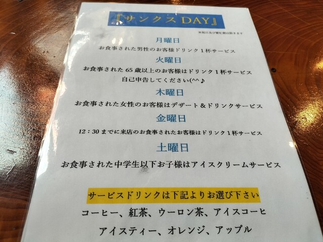 日曜だったのでサンクスデーの対象ではない。