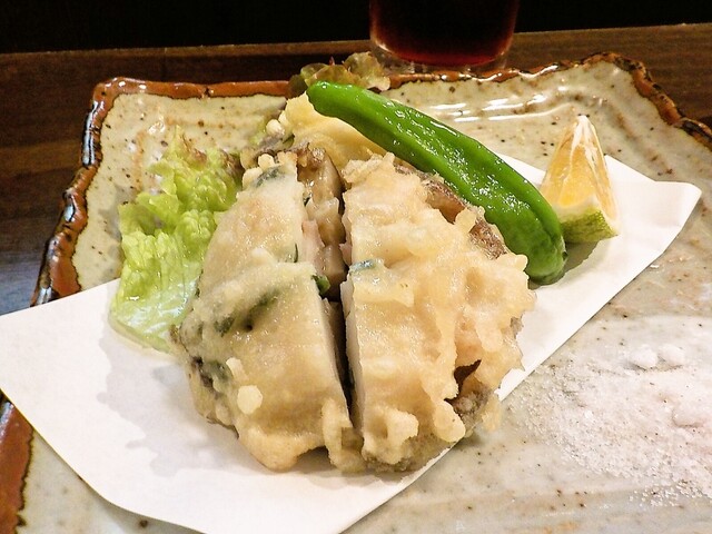 帆立と雲丹の磯部揚げ、だったかな。面白いメニューだ。