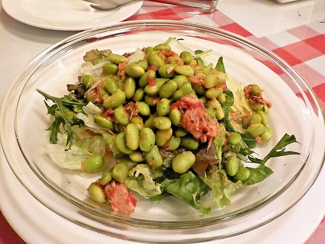 さてさて。前菜3種。いつものマメとツナのサラダ。