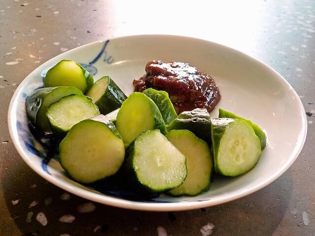 最初出てきたのはキュウリ。生産地についての説明は忘れた。良いものだ。