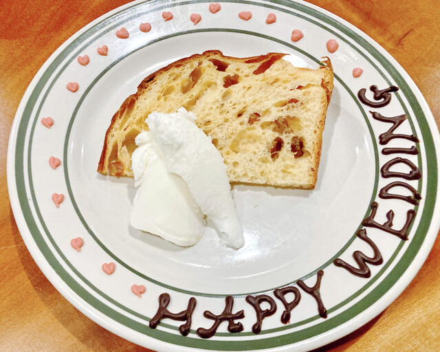 友達の結婚祝いでパネットーネをサービスしてくれました♡ふわっとしててドライフルーツが美味しくて感動モノでした\(^o^)/