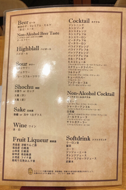 飲み放題もビール・ハイボール・サワー・焼酎・日本酒・ワイン・果実酒・カクテル・ノンアルコールカクテル・ソフトドリンクと種類豊富すぎ!