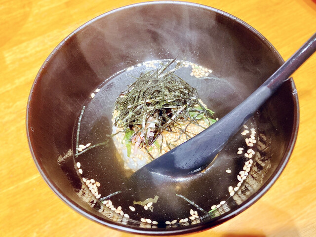 バゲットにフォアグラが乗った一品から始まり、海鮮サラダ、里芋のフリット、オムレツ、マルゲリータピザ、鮭の幽庵焼き?白子添え、お茶漬け、デザートと全8品の豪華なコース♡