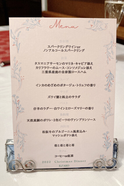 クリスマス限定のディナーコースです。