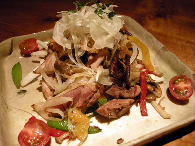 ■地鶏炙りと大根のサラダ 胡麻風味(850円)(左)