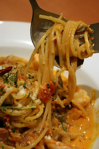 今回のパスタは海老とベーコンのトマトクリーム。ifでは通称トマクリと呼ぶんだとか。