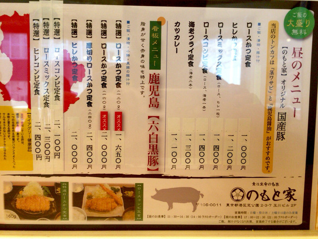 とんかつは、お値段安めの「オリジナル国産豚」と高めの「鹿児島六白黒豚(特選)」の二種類があります。