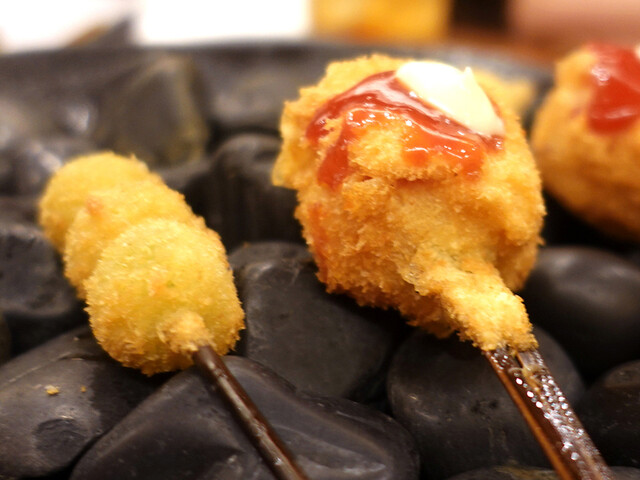 横浜トリップ、この日のお昼ご飯は遅くに中華街でしっかりでしたので、夕飯はチョット焼き鳥で一杯程度にしようと、宿の近くを散策、あらかじめ奥様が嗅覚で目星をつけていた磯むらさんへ、玄関先でお店をのぞいていたらご常連のおじさん⁈が出てきて「磯むらさんおすすめトーク」炸裂です。勢いに押され店内の一つ空いていたテーブル席へ滑り込みました。不思議なものでお店の活気に食欲も回復!ストップ合図で終了のおまかせコース、海老からスタートです。奥様は昨年のファスティングを機に全く揚げ物を食べてないので大丈夫?驚きです!次から次へと供される串揚げに手が止まらず10本平らげ、私の麦焼酎も横取りです!!磯むらさんの串揚げは、軽くて火入れも絶妙で食材の旨さが際立っています。これは、揚げ物ではありません、全く油を感じない「素材の格上げ物」ですね!恐れ入りました。