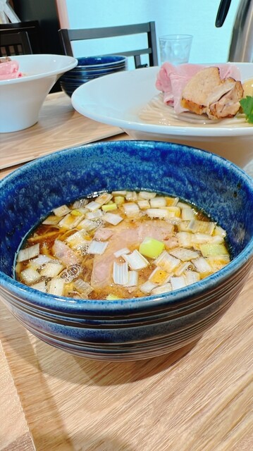 白い器の方は友人が注文した限定らぁ麺「貝と鰹の淡麗塩らぁ麺」の特製です。