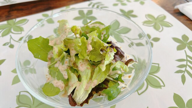 セットのレタスとルッコラのサラダはシンプルながらとても美味しい・・