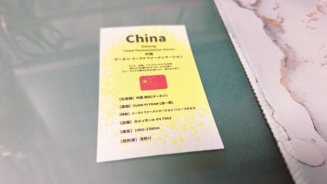 選んだのは「デーホン イーストファーメンテーション」。ライチや白桃を彷彿とさせる果実感と、ジャスミンのような気品ある香りが同居する一杯です。飲み口は驚くほど軽やかで、果実茶を思わせる優しい甘みが続きます。温度が下がるにつれてさらに甘みが広がり、変化を楽しむことができました。